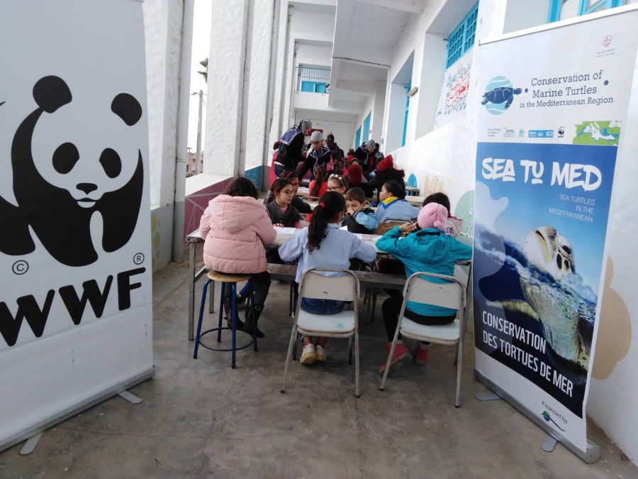 In the framework of #SeaTuMed project, awareness-raising activities targeting fishermen, fishers’ families, schools and the general public have been carried out by the #SeaTuMed consortium, in ports, fishing schools, primary schools, high schools and universities in order to raise awareness on sea turtles and their importance for marine ecosystems. A major objective of the project is to reduce illegal sea turtle trade in Tunisia.